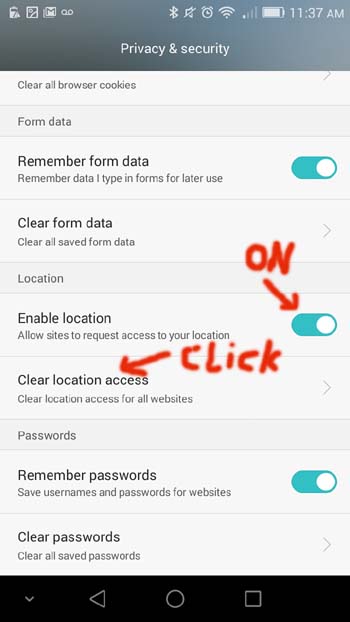 How to enable location setting of you mobile browser