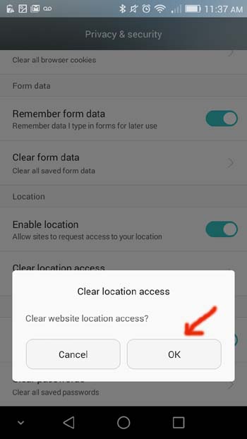 3. Clear previous location data at browser.