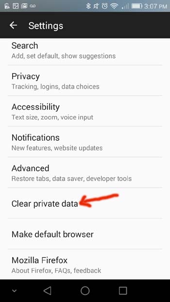 Menu -> Settings -> Clear private data